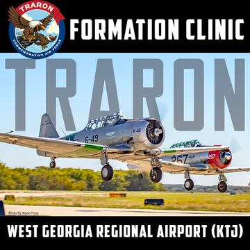 November 13-16, 2025 A Commemorative Air Force TRARON Formation clinic will be held at the West Georgia Regional Airport (CTJ) in Carrollton, GA, from November 13-16, 2025. Participants are required to be members of the Commemorative Air Force and CAF TRARON prior to arriving at the clinic. Training will be offered in the T-6/SNJ/Harvard, Beech 18/C45, and T-34 Mentor. Pilots seeking formation training in other aircraft shall contact the organizers before registering to confirm that sufficient and appropriate aircraft are expected.