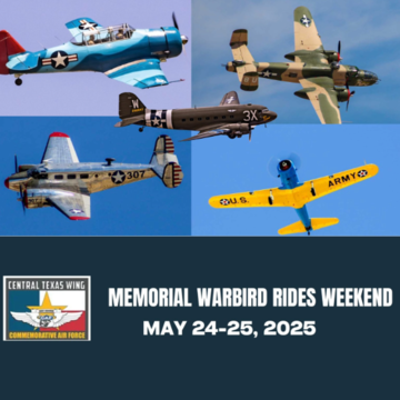 May 24-25, 2025 Experience the ride of a lifetime on our historic aircraft: • C-47A, "That's All, Brother" • B-25 "Yellow Rose" • C-45 "Lone Star Lady" • AT-6 Texas • BT-13 Trainer Flights starting at $269 depending on the aircraft.