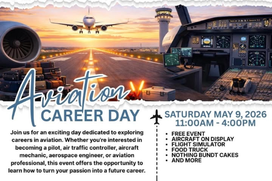 May 9, 2026 Join us for an exciting day dedicated to exploring careers in aviation. Whether you're interested in becoming a pilot, air traffic controller, aircraft mechanic, aerospace engineer, or aviation professional, this event offers the opportunity to learn how to turn your passion into a future career. Open to students, families, educators, and community members of all ages. Explore the past. Discover your future in aviation.