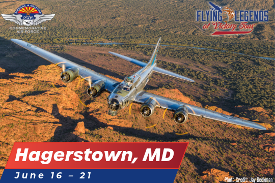 June 16-21, 2026 Not everyone can visit the Airbase Arizona Museum for an up-close and personal inspection of our historic warbirds. So, in the summer, we take our World War II planes to the public to fulfill our mission of educating generations about the role of aviation in combat history. The Flying Legends of Victory Tour, starts in May and ends in September. Our flying warbirds travel to cities in the US and Canada. Keep your eyes to the skies when our B-25 Maid in the Shade and B-17 Sentimental Journey fly overhead to their next destination. And come visit us when we’re in your town. Rides and tours are available, but be sure to book your seat in advance because we’ll only be there for a limited time.