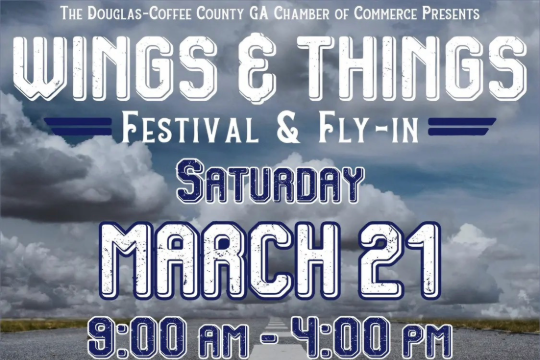 Visit Douglas-Coffee County GA is so excited to announce the 4th Annual WINGS & THINGS Festival and Fly-in at the Douglas Municipal Airport on March 21st in southeast Georgia! Last year was a huge success and we can’t wait to do it again – bigger and better! We’ll be there all day Saturday with warbirds, antique military vehicles, food trucks, vendors, kids area, entertainment, car show, hot wing cook-off and so much more. Grab the family and fly or drive in to the airport for a day of fun and history!1