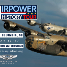 Contracted to be built for France in 1940 and later contracted to be diverted to Great Britain as AM927, this Liberator, now known as Diamond Lil, was the 25th built out of a total of 18,482 B-24s. Diamond Lil, assigned to the B-29/B-24 Squadron, is a feature aircraft of the AirPower History Tour. For the past year and a half, Diamond Lil was undergoing extensive maintenance. In June, Crew Chief Rick Garvis cheerfully announced that Diamond Lil was ready to take flight again and she is already back out on the road. You can visit www.airpowersquadron.org for more information about tour schedules, rides, and info on how to join the Squadron.