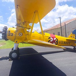 This aircraft was assembled from parts over 10 years ago. Wing members worked diligently to bring her to flying status from the parts of two different Stearman aircraft donated to the LSW all those years ago. The aircraft is painted in Navy colors and is maintained in flying condition by the diligent efforts of the members of the Lone Star Wing based in Marshall, Texas.