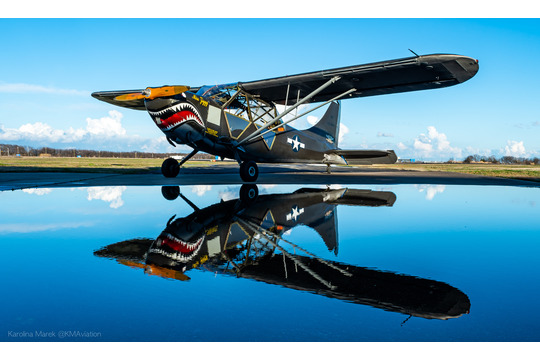 The origins of the L-5, affectionately known as the "Flying Jeep", can be traced to the prewar civilian Stinson HW-75. In March 1943, with the creation of the liaison category of light observation aircraft (previous examples came from Taylorcraft Aircraft as the L-2, and from Aeronca as their L-3, along with the numerous Piper L-4) the designation for Stinson's new purpose-built military design was changed to the L-5. The primary purpose as a liaison aircraft was courier and communication work, artillery spotting and casualty evacuation. The fuselage of later models was redesigned so the aircraft could also be used as an air ambulance, or for cargo work. With a wider and deeper rear fuselage section and a large rear door that folded downward, a litter patient or 250 pounds of cargo could be quickly loaded aboard. The L-5 series was manufactured between December 1942 and September 1945, during which time 3,590 of the unarmed two-seaters were built for the United States armed forces, making it the second most widely used light observation aircraft of the war behind the Piper L-4 Cub.