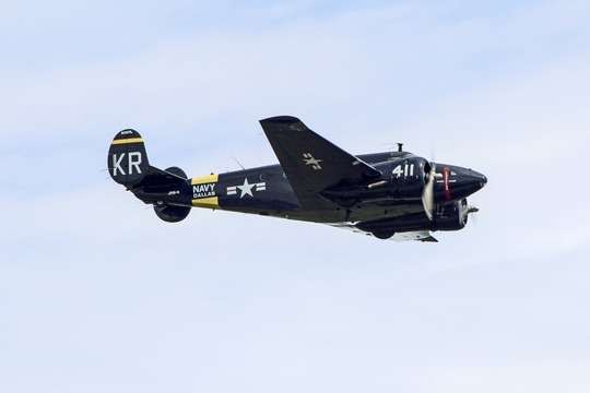 Commonly referred to with the military designation of C-45, these aircraft were used in the military as light transports, light bombers, and photo-reconnaissance planes. Large numbers of them also saw service as aircrew trainers for bombing, navigation and gunnery. In World War II, over 90% of USAAF bombardiers and navigators trained in these aircraft, so the aviators who flew in the nose of the Gulf Coast Wing’s B-17 Flying Fortress Texas Raiders almost certainly trained in a variant of the C-45 like this one. About 250 of the aircraft remain airworthy today.