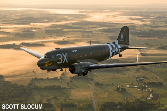After serving on D-Day, and in Operations Dragoon, Market Garden, Repulse, and Varsity, the airplane returned to the United States and was sold to the civilian market in 1945. During the course of many owners over the next several decades, the historical significance of the airplane was lost, and it was eventually sold to be scrapped. Fortunately, two Air Force Reserve historians discovered that this historic airplane was lying in a boneyard in Wisconsin. The Commemorative Air Force was able to acquire the airplane, and through a large group of donors and volunteers, restore the airplane to flying status.