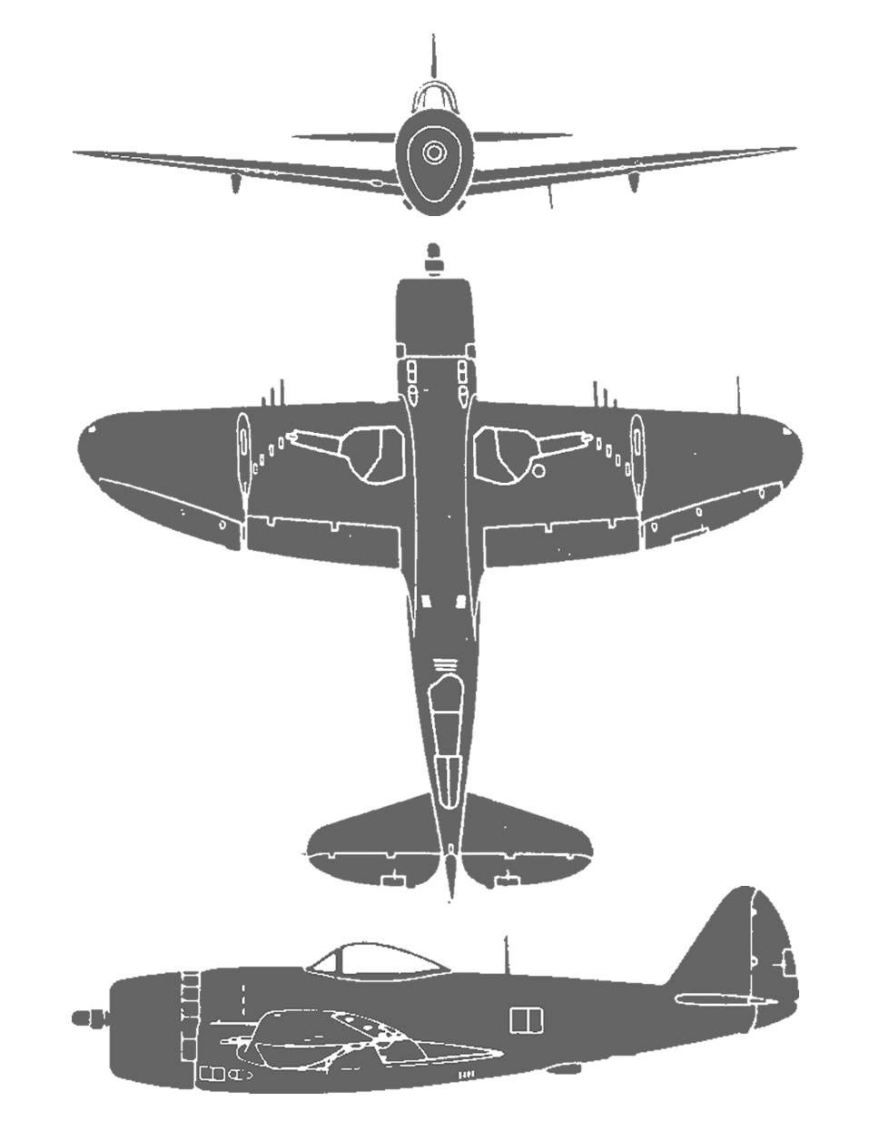 The Republic P-47 Thunderbolt was a World War II era fighter aircraft produced by the United States between 1941–1945. Its primary armament was eight .50-caliber machine guns and in the fighter-bomber ground-attack role it could carry five-inch rockets or a bomb load of 2,500 pounds (1,103 kg). When fully loaded the P-47 weighed up to eight tons (tonnes) making it one of the heaviest fighters of the war. The P-47 was designed around the powerful Pratt & Whitney R-2800 Double Wasp engine which was also used by two U.S. Navy fighters, the Grumman F6F Hellcat and the Vought F4U Corsair. The Thunderbolt was effective as a short-to-medium range escort fighter in high-altitude air-to-air combat and ground attack in both the World War II European and Pacific theaters.