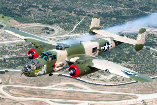 The “Yellow Rose”, the christened name of the vintage B-25J Mitchell WWII bomber, is once again touring the American skies. The bomber is completely restored to its wartime capabilities and is operated by the Commemorative Air Force Central Texas Wing. It is one of the flying museum pieces belonging to the organization’s “Ghost Squadron” aircraft collection. After four years, the aircraft was lovingly restored to WWII condition by members of the Central Texas Wing and donated to the CAF in 1981. Literally thousands of man hours were donated over the four year period by the members of the Yellow Rose Squadron in order to bring the Rose back into full operational readiness. The restoration project met numerous problems including the lack of parts and, of course, lack of funds. With the help of dedicated aviation enthusiasts throughout the state of Texas and the skill of volunteer craftsmen, the plane was again ready to fly.