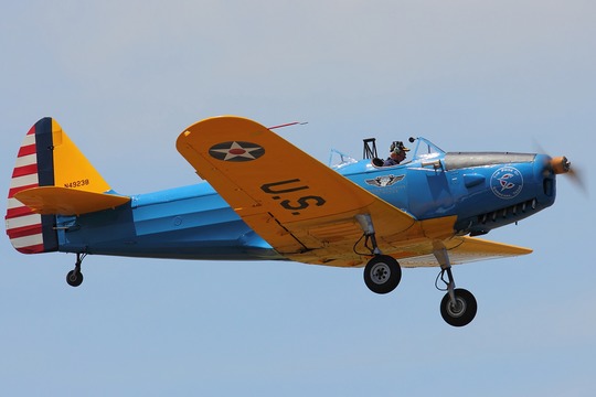 A PT-19 came into the Army inventory in 1942. (By this time, the service was known as the US Army Air Forces.) It was assigned the tail number N49238. It’s not known where the aircraft was stationed for flight training duty but, in April, 1945, the Defense Plant Corporation sold it to Hugh Bowman of Belt, MT, for $875. In August, 1977, Bowman sold the aircraft to Leonard Bonker of Albia, IA. In March, 1980, Bonker sold it to Boulder Aviation of Boulder, CO. In April, 1987, Boulder Aviation sold the plane to Colvin A/C, Inc., of Big Cabin, OK, and, in September, Colvin A/C sold it to Richard Chamberlain of Berkeley, MO. Records show that, in January, 2000, Ben Acock, representing a few members of the Coyote Squadron, purchased the airplane from the estate of R.W. Chamberlain. In February, 2001, the plane was transferred to the Navarro County Heritage Aircraft Association of Corsicana, TX, the precursor to the Corsicana Field Aviation Heritage Foundation, and the plane was transferred to the latter organization in April, 2002. In June, 2005, title to the plane was transferred to the American Airpower Heritage Flying Museum (Commemorative Air Force) of Midland, TX, but it actually remains with the Coyote Squadron.