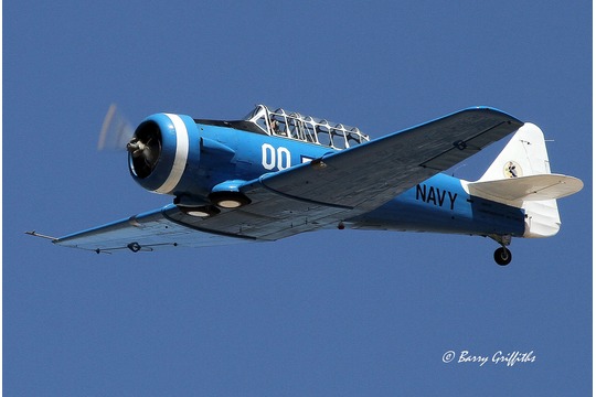 The North American Aviation T-6 Texan is an American single-engined advanced trainer aircraft used to train pilots of the United States Army Air Forces (USAAF), United States Navy, Royal Air Force, and other air forces of the British Commonwealth during World War II and into the 1970s. Designed by North American Aviation, the T-6 is known by a variety of designations depending on the model and operating air force. The United States Army Air Corps (USAAC) and USAAF designated it as the AT-6, the United States Navy the SNJ, and British Commonwealth air forces the Harvard, the name by which it is best known outside the US. Starting in 1948, the new United States Air Force (USAF) designated it the T-6, with the USN following in 1962. It remains a popular warbird aircraft used for airshow demonstrations and static displays. It has also been used many times to simulate various Japanese aircraft, including the Mitsubishi A6M Zero in movies depicting World War II in the Pacific. A total of 15,495 T-6s of all variants were built. -- Wikipedia