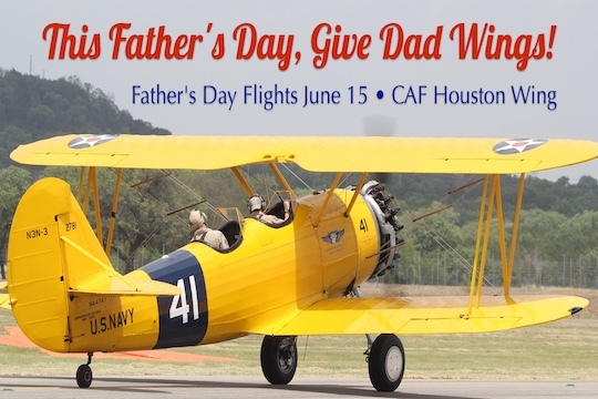 Treat Dad to a flight on a historic warbird when the CAF Houston Wing hosts Father's Day Flights on June 15 at West Houston Airport. Fly in the open cockpit N3N biplane, the BT-13 WWII trainer, or the AT-6 Texan known as "The Pilot Maker" throughout WWII. Reserve your flight at the ticket link in this event, or visit https://bit.ly/4amySm1