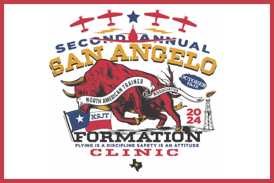 Please join us for the Second Annual San Angelo NATA Formation Clinic. All NATA members are invited in T-6/SNJ/Harvard, Stearman, Navion, and T28 Aircraft.
