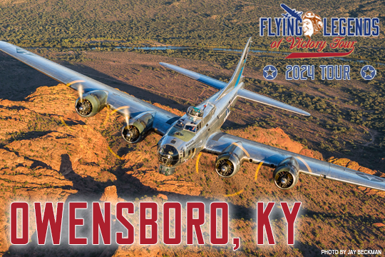 The B-17 Flying Fortress Sentimental Journey and the B-25 Mitchell Maid in the Shade will be at the Owensboro Air Show at Owensboro-Daviess County Airport in Owensboro, KY September 12-15, 2024. A one-of-a-kind collection of the rarest historical military planes in the world will be near you. Come see them up close and personal, and better yet fly in one! Ground Tours: Thur: 9a – 5p $15 per person/$30 for a family of 4 Fri: 4p – 8p $5 per person at the airshow Rides: Fri – Sun: 9a – 12p Aircraft Pricing: B-17 Bomber $475 USD per waist compartment seat (6 available) $850 USD per Bombardier/Navigator Seat(2 available) B-25 Bomber $375 USD per radio compartment seat (4 available) $590 USD per jump seat(3 available)