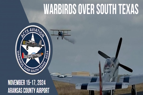 ree Parking and Free Admission - This is a family friendly event! But... save money to purchase a warbird ride from a full buffet of airplanes ( B-25 bomber, C-47 paratrooper airplane, C-45 transport airplane, T-6 fighter trainer, BT-13 trainer, Stearman Bi-Plane, or even a Navion), food trucks, vendors, and more! Fly-In or Drive-In: Everyone is welcome to attend. Note: Friday, November 15 is a special Education Day exclusive for local school districts, private schools, and home school groups. Also, there will be early arrivals photo opportunities that afternoon, but you'll need to call for more details! ACTS Aviation is proud to announce our annual fly-in event Warbird's Over South Texas 2024. This is a time honor our Veterans (Past, Present, and Future) who have proudly served for our freedom.