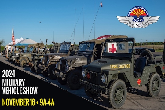 Join Airbase Arizona and the Arizona Historical Military Transport Association for a military vehicle show and swap meet on November 16.