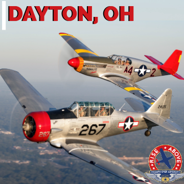 June 21-22, 2025Our RISE ABOVE Traveling Exhibit will have showings Saturday, 21 Jun, 10a – 4p. Sunday, 22 Jun, 10a – 3P. The P-51C Mustang will arrive June 20th and be on static display. For more information visit https://daytonairshow.com/