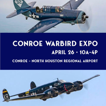 April 26, 2025 Put your hands on history at Conroe – North Houston Regional Airport! One day only, Saturday April 26th, five vintage warbirds will be offering Living History Flights in Conroe. Reserve a once-in-a-lifetime flight on a historic warbird, and get ready to cue the grins and maybe some goosebumps! Gates are open from 10:00 AM to 4:00 PM, with cockpit tours available during non-flying times.Five legendary CAF warbirds will be offering cockpit tours and Living History flights, including a WWII bomber and the paratroop transport that led the D-Day invasion in 1944.