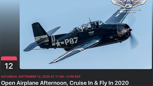 Open Airplane Afternoon, Cruise In & Fly In 2020