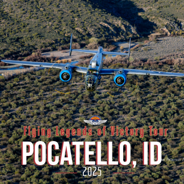 July 1-6, 2025 Not everyone can visit the Airbase Arizona Museum for an up-close and personal inspection of our thrilling warbirds. So in the summer, we take our World War II planes to the public to fulfill our mission of educating generations about the role of aviation in combat history. The Flying Legends of Victory Tour starts in May and ends in September. Two of our flying warbirds travel to approximately 15 cities. Keep your eyes to the skies when our B-25 Maid in the Shade flys overhead to their next destination. Come visit us when we’re in your town. Rides and tours are available, but be sure to book your seat in advance because we’ll only be there for a limited time.