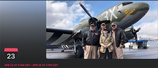 See the plane that led the main airborne invasion on D-Day, the C-47 That's All Brother as we visit Xenia, OH to celebrate Jim "Pee Wee" Martin's 100th birthday! Pee Wee jumped at Normandy, and he and his fellow surviving 101st Airborne vets will celebrate his birthday in style, and you can too! We will offer rides to the public on D-Day veteran "That's All Brother"