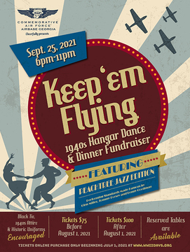 As a thank you for your participation, support and loyalty to WWII Heritage Days over the years, we are providing all registered volunteers with a $25 discount on the purchase of one (1) ticket for CAF Airbase Georgia “Keep ‘em Flying” 1940s Hangar Dance and Dinner Fundraiser. Please note that the promo code is good for tickets only and cannot be applied to a table purchase. All tickets must be purchased online to receive the discount and utilize the promo code. We expect a sellout, so please purchase your tickets ASAP.