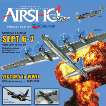 September 6-7, 2025 Welcome to AIRSHO Gates open 9:00am, flying begins 11:30am, and concludes 3:00pm. AIRSHO is an exciting event held annually at Midland International Air & Space Port in Midland/Odessa, Texas and hosted by the Commemorative Air Force High Sky Wing. In addition to one of the most impressive flying displays of vintage military aircraft, you'll also see some of the most popular civilian aerobatic performers. AIRSHO offers visitors a chance to get close to the aircraft and see them perform in ways you won't experience anywhere else. In addition to a dazzling display of aircraft, you'll want to be sure to watch the CAF's Pyrotechnic Groups, award-winning groups of licensed pyrotechnic technicians shake the ground with simulated bombing raids, strafing runs and the infamous "wall of fire." Watch history come alive before your very eyes (and ears!).