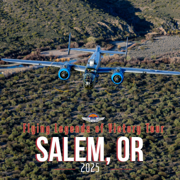 August 19-24, 2025 The B-17 Flying Fortress Sentimental Journey and the B-25 Mitchell Maid in the Shade will be at the Salem-Willamette Valley Airport in Salem, OR August 19 – 24, 2025.