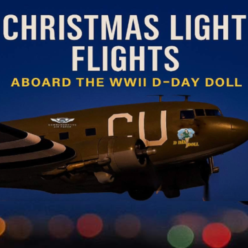 November 29-December 20, 2025 Take to the Skies this Holiday Season! Experience the magic of Riverside’s Christmas lights like never before , from the air aboard a real WWII combat aircraft! Join us for an unforgettable evening flight in the legendary D-Day Doll, a Douglas C-53 that flew in the D-Day invasion. It’s a one-of-a-kind holiday experience for families, date nights, or the perfect gift! Special Holiday Flight Pricing! Our regular price is $250 per guest, but we’re offering a limited-time seasonal discount: • 1 Guest: $175 • 2 or More Guests: $150 each Bring the whole family and experience a magical flight over the Christmas lights! Book your flight today -
