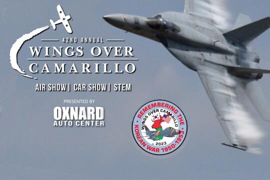 The 42nd annual Wings Over Camarillo, presented by Oxnard Auto Center, will occur August 19-20, 2023, at Camarillo Airport. Experience the sounds, speed, and freedom of flight with the U.S. Navy F/A-18 Super Hornet West Coast Rhino demo! This year's theme is "Honoring Our Korean War Veterans 1951-1953."