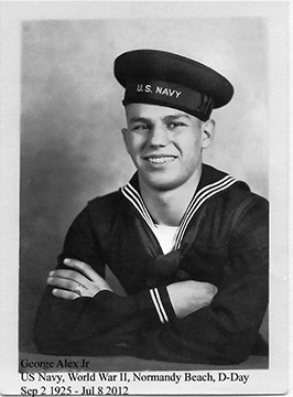 George Alex Jr. was born on September 2nd 1925 and entered the U.S. Navy after his 18th birthday on November 12th, 1943. He was assigned to the LCI (L) 414 on March 17th, 1944, and by March 24th, he departed Norfolk, Virginia on board the LCI (L) 414, bound for England. His ship reached Falmouth, England on April...
