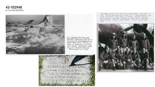 Buddy Hovland was born in Racine Wisconsin and was a B-17 Co-pilot. He was killed while evading capture on his 3rd mission after flak caused an engine fire on his bomber the Denver Bandit. His actions to free the pilot and help him into a parachute saved the pilot's life.