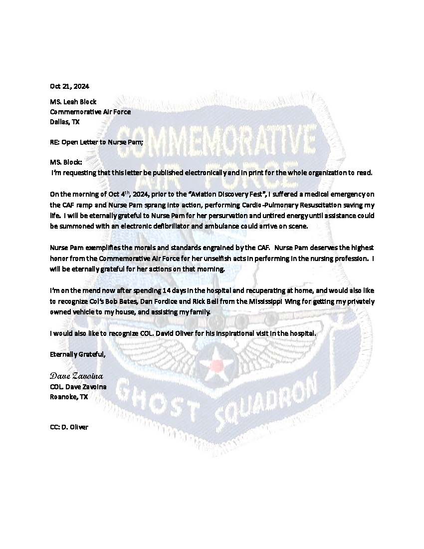 “Commemorative Air Force Dallas, TX RE: Open Letter to Nurse Pam