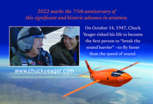 LOS ANGELES, CA (September 13, 2022) - Seventy-five years ago, Captain Chuck Yeager broke the sound barrier in spite of many experts who thought it couldn’t be done and that the pilot and the airplane would burst into a million pieces.