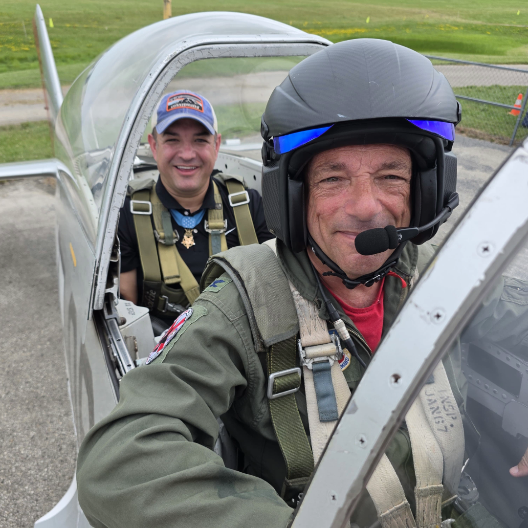 Oshkosh, Wisconsin (July 28, 2025) – The Commemorative Air Force (CAF) recently had the privilege of honoring a true American hero in a powerful tribute flight. On Saturday, July 26, Master Sergeant Leroy Petry, Medal of Honor recipient and retired U.S. Army Ranger, took to the skies in the CAF’s legendary P-51 Mustang Red Nose. The aircraft, assigned to CAF Airbase Georgia, was piloted by John Currenti.