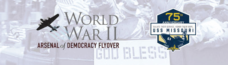 The Hawaii Commemoration Committee includes Mike Carr, President and COO of the Battleship Missouri Memorial and Elissa Lines, Executive Director of the Pearl Harbor Aviation Museum. Sponsorship and philanthropic support will be applied as required by the planning and execution committees of the 75th Commemoration of the end of World War II or as directed by the donor. Designation or endorsement as an official sponsor of the Commemoration, use of logo or trademarked properties to be directed to the official 75th Commemoration Committee. Residual funds available at the conclusion of the commemoration, if any, will be allocated by action of the 75th Commemoration Committees in support of the following historic and programmatic directions with focus on STEM impact and historic/memorial significance: Smithsonian National Air and Space Museum’s new World War II gallery, Friends of the National World War II Memorial, USS Missouri Memorial Association and the Pearl Harbor Aviation Museum. For more information about sponsoring the Hawaii Commemoration Committee activities, please contact Elissa Lines at elissa@pearlharboraviationmuseum.org or 808-441-1017 or Skip Lehman, at skip@mach2management.com or 585-727-4991.