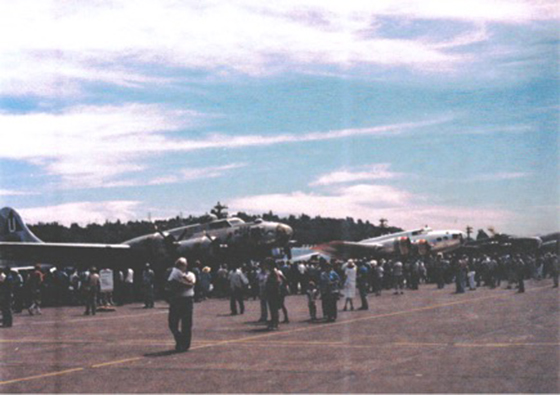 I was lucky enough to be on the crew of the CAF's B-17 Sentimental Journey that included Frank Nagle, Sam Korth, Dick Churchill and several other CAF Airbase Arizona members during the huge 50th anniversary celebration sponsored by the Boeing Management Association and held over a three-day period in July 1985. The event at Boeing Field in Seattle included 21 bomb group reunions and was attended by approximately 14,000 thousand World War II veterans and their families, along with thousands of other former defense workers and visitors.