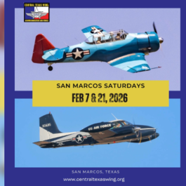 **February 21, 2026**Take once in a lifetime ride in a WWII advanced fighter trainer in the Commemorative Air Force, Central Texas Wing's AT-6 Texan - a beautiful WWII advance trainer. Or ride take a ride like a general in our U3a Blue Canoe, executive transport aircraft. Click below to purchase your ride! This Living History Flight Experience is like no other, and the entire experience lasts approximately one hour. Passengers must check in 45 minutes before flight time. Pre-boarding includes check-in, a passenger safety briefing and photo opportunity with the crew. Once boarded the passengers will experience the engine start up sequence, a few minutes taxi to the runway, and a pause on... ...
