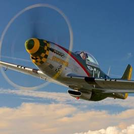 Gunfighter is one of the world’s most famous P-51 Mustangs, having appeared on the airshow circuit and providing rides for over 35 years. The aircraft is a P-51 "D" model, serial number 44-73264. Of the approximately 15,000 P-51s produced in WWII, over 8,000 were “D” models. Today, only about 150 airworthy examples of Mustangs exist world-wide in museums, flying or under restoration. Gunfighter was built in the Inglewood, California North American plant and accepted into the USAAF in March, 1945. That month, it was shipped to England, where it was assigned to the famous 'Mighty Eighth' Air Force. In July of 1945, after the War ended in Europe, it was returned to the U.S. and assigned... ...For nearly 40 years, "Gunfighter" has been thrilling Airshow crowds, and providing dream flights for lucky riders throughout the United States. Our goal is to honor our veterans and serve their families by keeping alive the sights and sounds of this great aircraft! Make a point of coming to see us at one of our Airshow appearances or ride event stops this year!