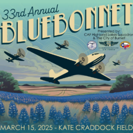 March 15, 2025 Join the Highland Lakes Squadron of the Commemorative Air Force at the 33rd Annual Bluebonnet Airshow taking place on March 15th, 2025.