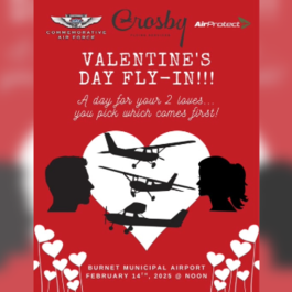 February 1, 2026 There's a huge love affair going on at the Highland Lakes Squadron of the CAF in Burnet, Texas. The members are madly in love with their beautiful warbirds and museum. Come visit and you'll see why. Join them on February 14th on Valentine's Day for the Crosby Valentine’s Day Fly-In starting at 12:00 PM. Come and join them in their love affair with history and airplanes.