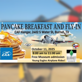 October 11, 2025 Highland Lakes Squadron of the CAF in Burnet Texas Pancake Breakfast. Free admission to the museum!