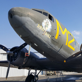 It was built at the Douglas factory in Santa Monica, California. It is one of 159 C-53Ds and was delivered to AAF on July 7, 1943. It was assigned to the 434th Troop Carrier Group and was stationed at various locations (Alliance Field, NE, Baer Field, IN, Fullbeck, UK, and Welford Park, UK) before arriving at Royal Air Force (RAF) Aldermaston, UK in march 1944. The 434th TCG consisted of HQ and the 71st to 74th Squadrons. Aircraft 830 was assigned to the 72nd Squadron (CU). The group's D-Day mission was to tow gliders carrying reinforcements to 101st Division troops who had been dropped earlier in the night near Utah Beach. At 0119, June 6, 1944, 52 of the Group's airplanes, each... ...The Inland Empire Wing (IEW) was formed as the "Inland Empire Wing" of the CAF. Its hangar is located in Hanger "S" on 6936 Flight Road at the Riverside Municipal Airport in Riverside, California. ? The IEW's hangar and WWII museum currently displays a T-6 Harvard II , an L-4 "Scout", a PT-22 "", and our C-53 Sky Trooper, "D-Day Doll". ? The IEW is a purely volunteer-driven organization. The members and volunteers dedicate their efforts to a variety of local projects, such as the maintenance and restoration of WWII aircraft, memorial flights at special events, contribution of museum displays to educate the public, and providing support and a presence at Southern California air shows.