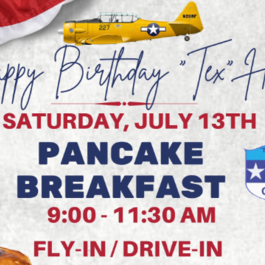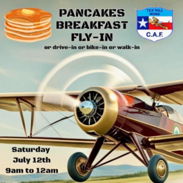 Walk, Bike, Drive or Fly ! Let’s flip some pancakes. All Members and Non-Members welcomed. RSVP by July 10th; 210-296-9648 or TEXHILLWINGEVENTS@GMAIL.COM