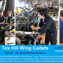 Date and Time: September 16, at 3:00 p.m.- The CAF's Tex Hill Wing is a group of members located in San Antonio, Texas. This group has a thriving cadet program which engages young people interested in learning more about aviation in a very hands-on way. The cadets in the Tex Hill wing are working on an interesting restoration project of a replica Japanese aircraft. Join us for a talk with the cadets about this project and what draws them to historic aviation.