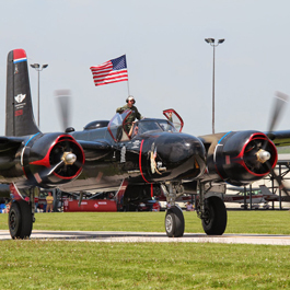 Our Lady is the oldest flying Invader, the 130th one produced, being accepted in Aug, 1944, at Long Beach, CA. It was flown to Great Dunmow, England arriving 20 Sep, 1944. It was assigned to the 9th AF, 410th BG and began combat operations in early 1945. The 410th was initially assigned 4 A-26?s. Each squadron was given one aircraft. They were painted completely black and initially used as night interdiction aircraft ranging all over Germany. Our aircraft is currently painted in 13th AF markings although this aircraft never saw service in Korea. After WWII it was flown to Hobbs, NM and stored. After some refurbishment it was assigned to a USAF Reserve unit for three years. It was... ...No events currently scheduled.